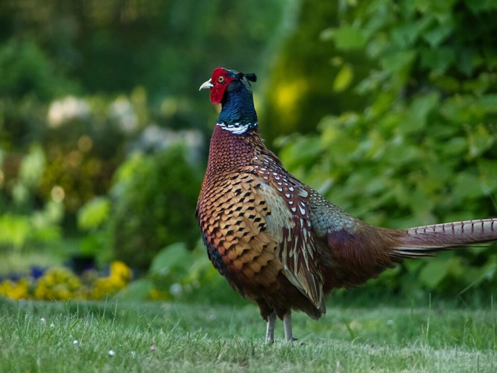 In their natural habitat, look for Ring-necked pheasants on agricultural land and old fields—especially fields that are interspersed with grass ditches, hedges, marshes, woodland borders, and brushy groves. They can live in forests, grasslands, and deserts. Despite this versatility, Ring-necked Pheasants do gravitate to particular kinds of habitat for specific activities. Typically, they roost in trees or dense shrubs in spring and summer and in forested wetlands, farm fields and weedy areas in fall. For early season nesting, they seek cover along grassy roadsides, fence lines, ditches, and wetlands. As the season progresses and vegetation grows taller and denser, they shift their nesting activity to fields of hay, particularly alfalfa. Ringed-necked Pheasants eat seeds—especially grain from farm fields—as well as grasses, leaves, roots, wild fruits and nuts, and insects. Their spring and summer diet is similar, but with a greater emphasis on animal prey and fresh greenery. They eat insects such as grasshoppers, beetles, caterpillars, crickets, and ants, as well as snails and earthworms. Ring-necked Pheasants forage in grasslands, hayfields, woodland edges, and brushy areas. They sometimes pick waste grain from cow manure in pastures. Pheasants take most of their food from the ground, scratching or digging with their bills. They can retrieve roots or seeds from as deep as three inches below the soil surface. They also sometimes forage in shrubs or trees for fruit, leaves, and buds.